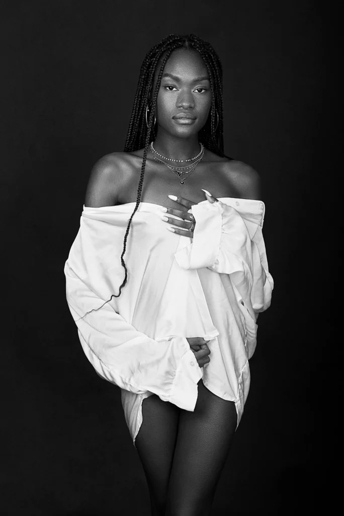 La pose est également très importante, car elle permet de mettre en valeur votre élégance et votre sophistication. Vous serez guidé pour trouver la meilleure position qui reflète votre personnalité tout en respectant les codes de ce style de photographie.